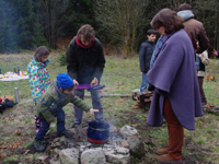 am Feuer beim Zaubern Zaubersuppe Toben!